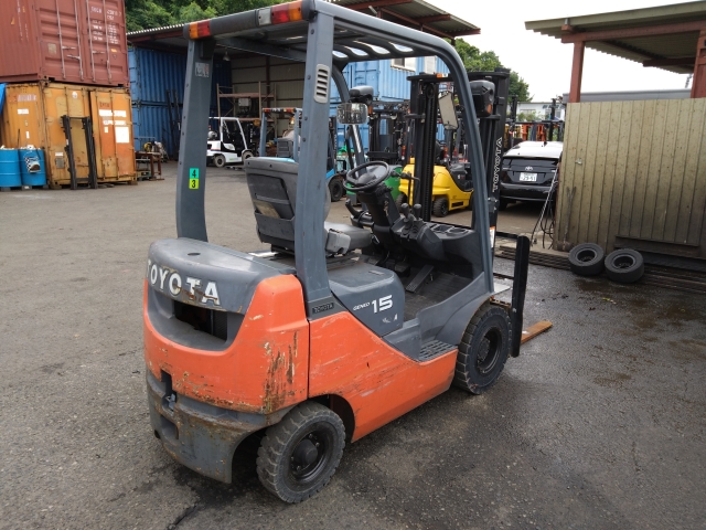 TOYOTA 8FGL15 車両価格(税込):SOLD OUT メーカー トヨタ 型式 8FGL15 車両タイプ カウンター エンジンタイプ ガソリン 荷重 1.5トン 年式 2006 使用時間 5,420 装備 V3.0mマスト、フォーク長920㎜(STD)、小型特殊仕様 備考