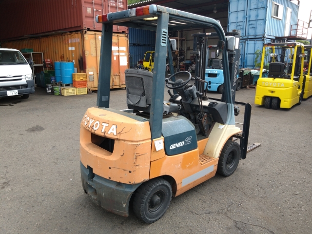 TOYOTA 7FG15 車両価格(税込):SOLD OUT メーカー トヨタ 型式 7FG15 車両タイプ カウンター エンジンタイプ ガソリン 荷重 1.5トン 年式 2004 使用時間 1,713 装備 V3.0mマスト、フォーク長920㎜(STD) 備考